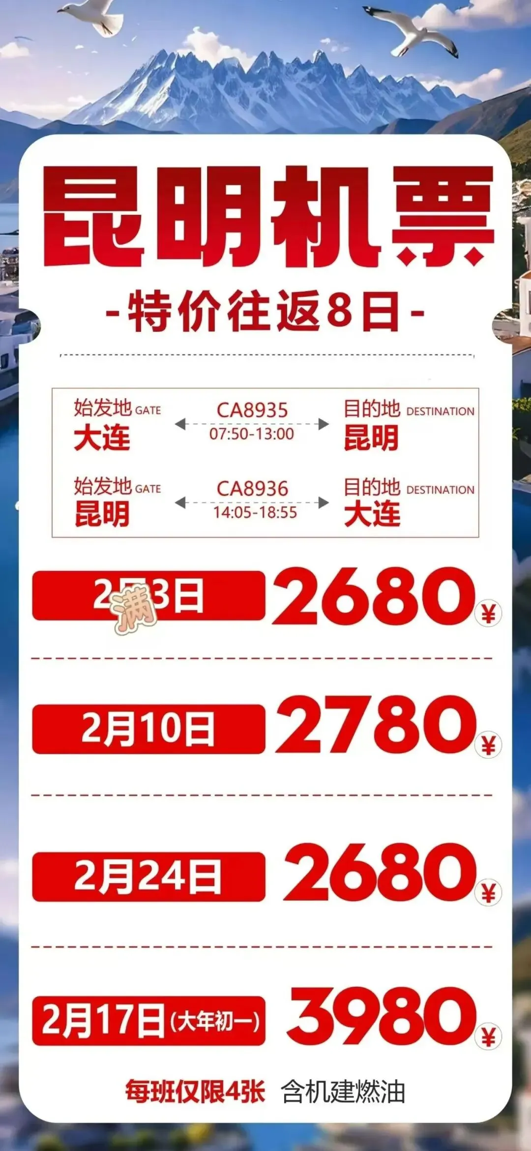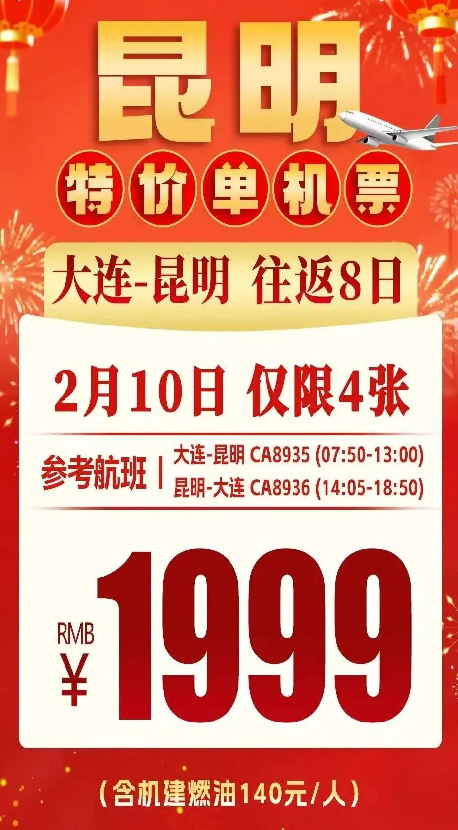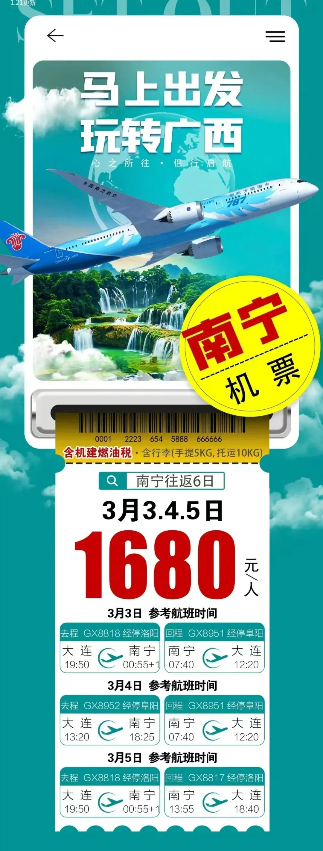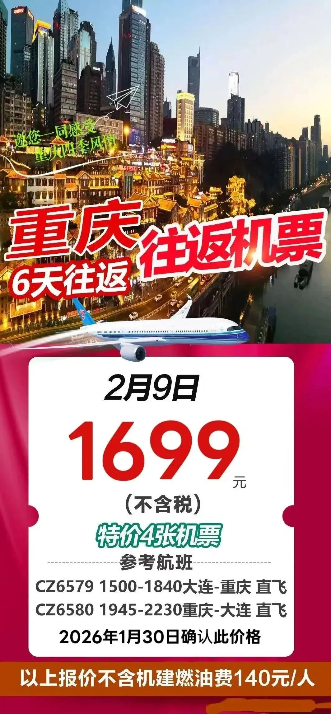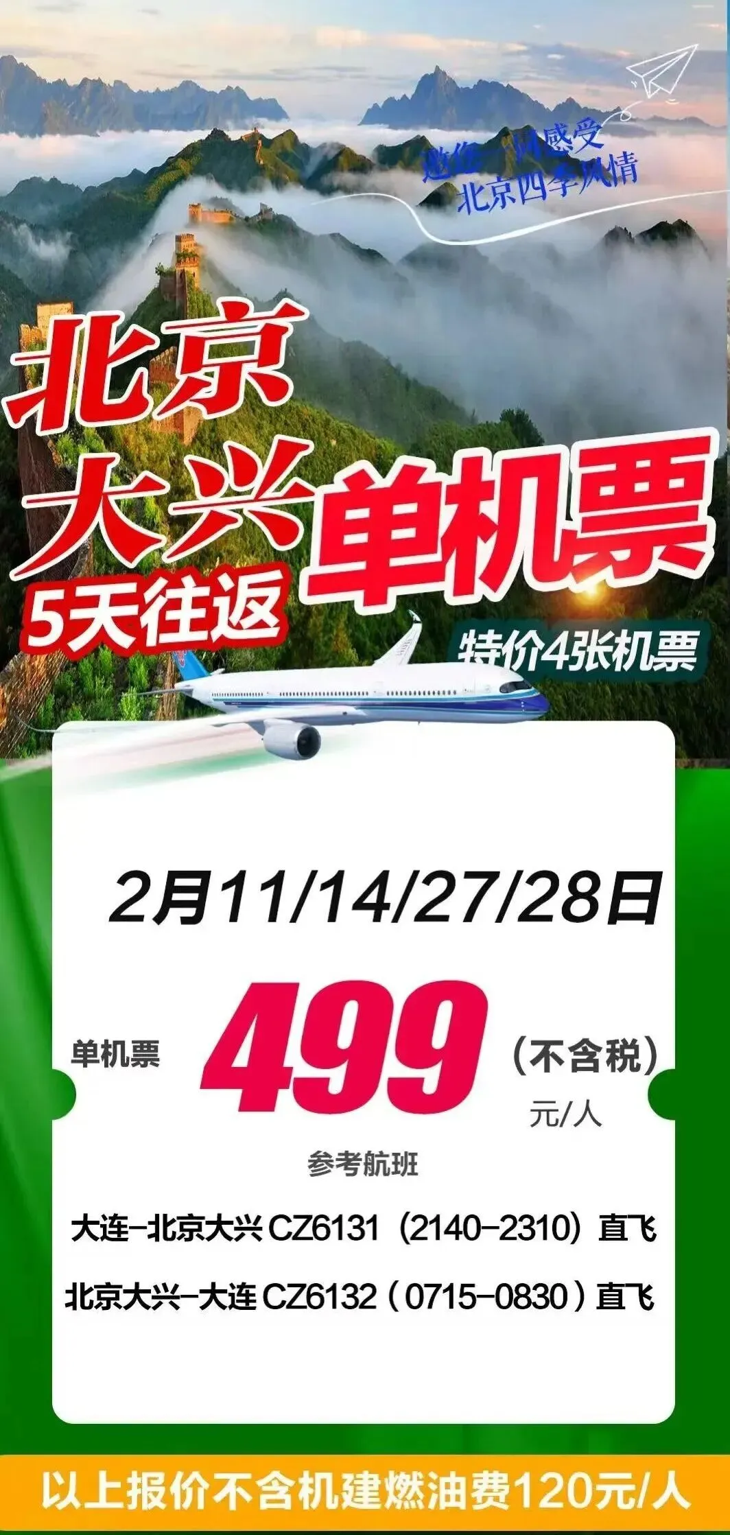 >(特价机票)南宁/长沙/广州/厦门/贵阳/重庆/成都/西安/上海/三亚/昆明/北京大兴/首尔//洛阳