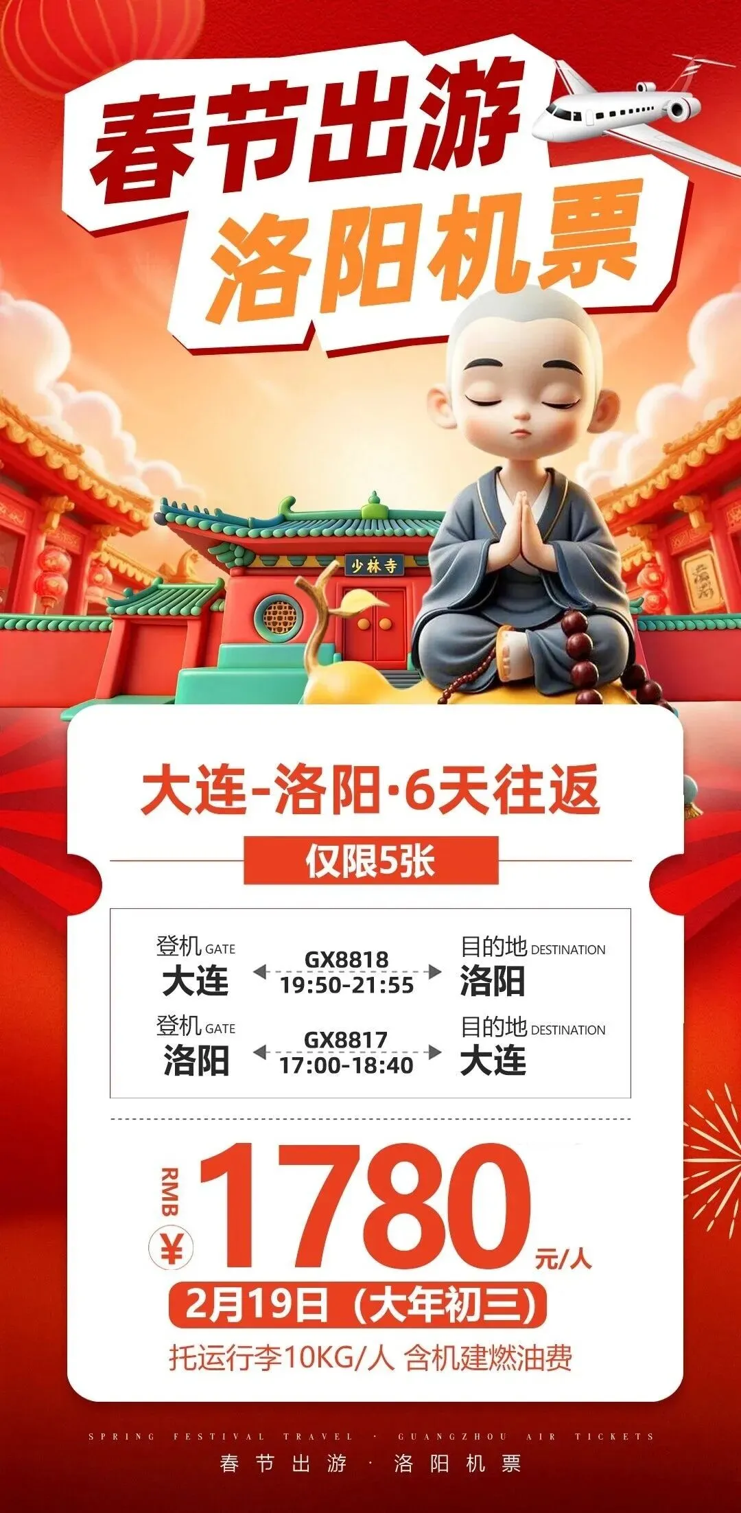 (特价机票)南宁/长沙/广州/厦门/贵阳/重庆/成都/西安/上海/三亚/昆明/北京大兴/首尔//洛阳