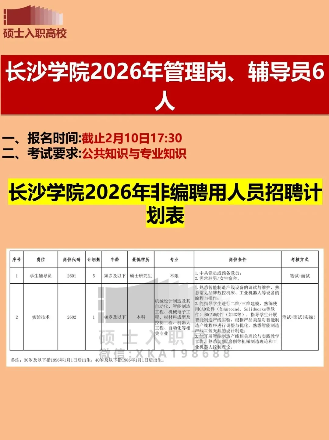 6.岗位所需要的其他条件见《长沙学院2026年非编聘用工作人员招聘计划表》(附件)。