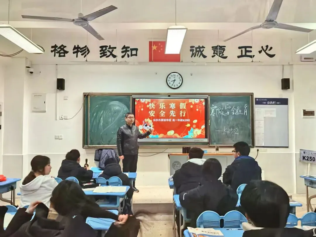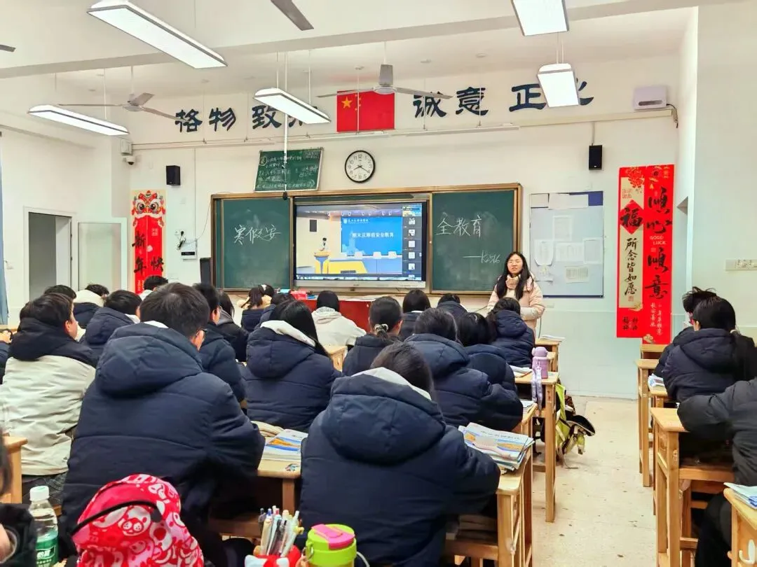 典礼最后,各级部组织班主任在各班教室开展分班寒假放假教育,布置寒假作业并进行“1530”安全教育。