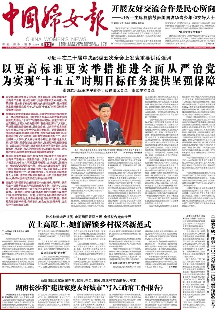 1月24日,《中国妇女报》头版头条刊发《长沙市妇联以党建凝心聚力推动妇女事业高质量发展》。