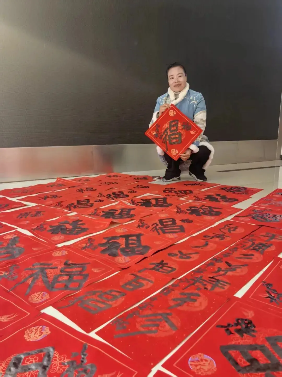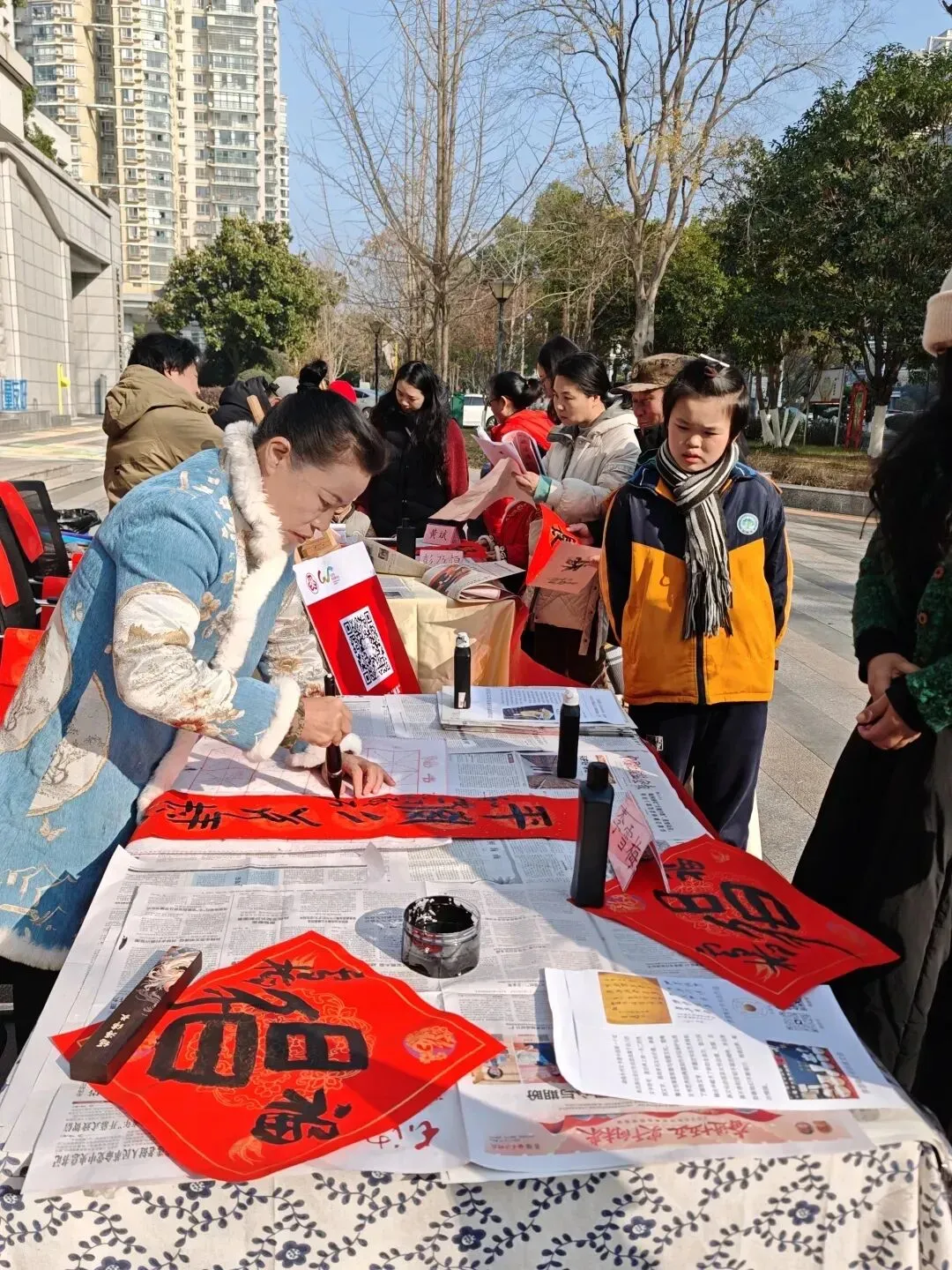 1月24日,长沙市妇联邀请到女书艺术传承人李雪梅,为市民送上女书对联。