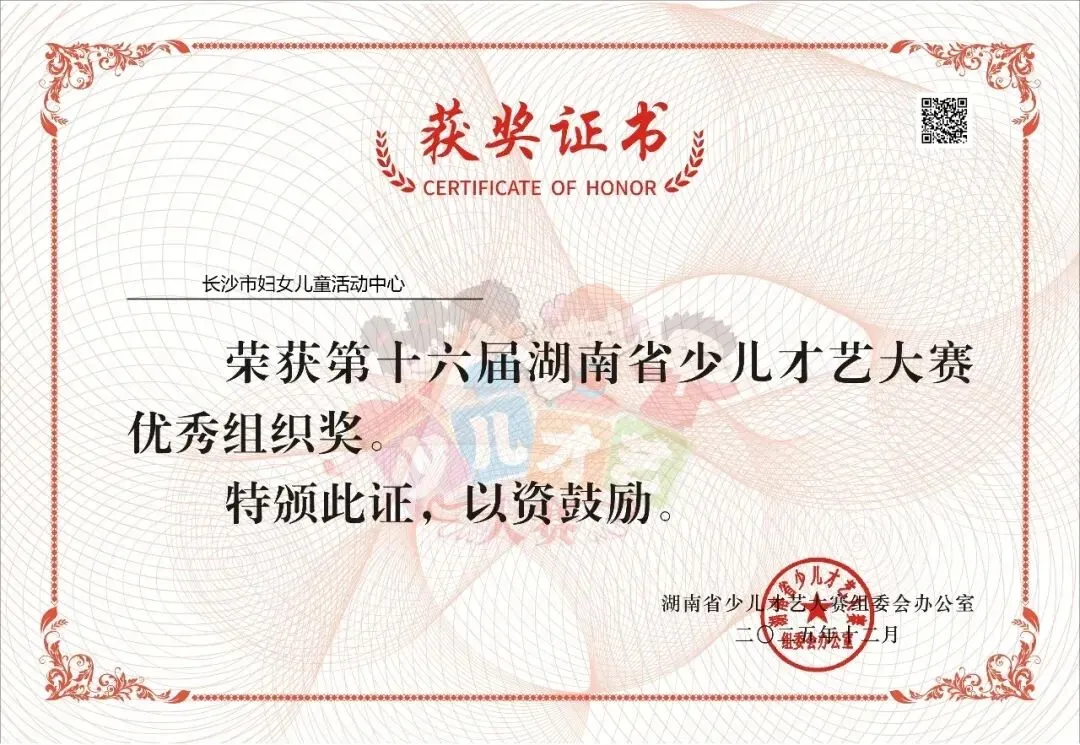 喜报!长沙市妇女儿童活动中心荣获第十六届湖南省少儿才艺大赛“优秀组织奖”