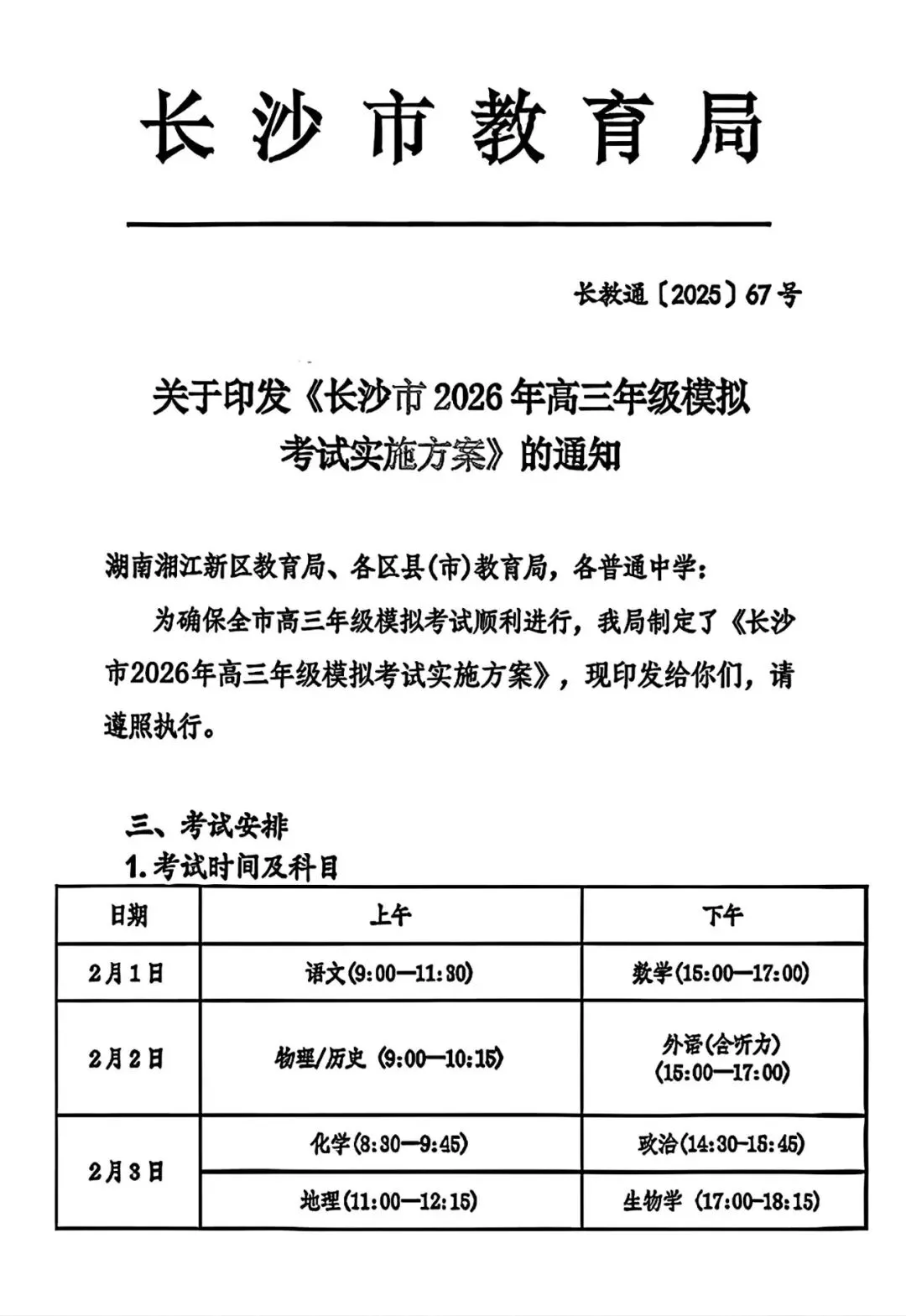 联考名称:长沙一模长沙市2026年高三年级模拟考试