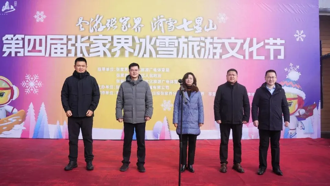 2026年1月31日,由张家界市文化旅游广电体育局、张家界市永定区人民政府、永定区文化旅游广电体育局指导的第四届张家界冰雪旅游文化节在张家界七星山度假区隆重开幕。本届冰雪节作为“张家界市永定区2026年春节暨元宵灯会系列活动”的亮点篇章,以“冬游张家界·滑雪七星山”为主题,正式拉开了张家界冬季旅游狂欢的序幕。张家界市文化旅游广电体育局副局长田洪曼宣布开幕。