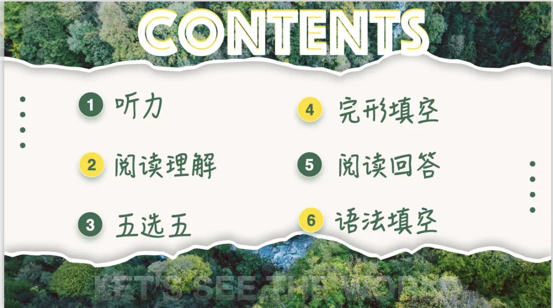 比如一篇阅读理解,控制在6分钟以内完成;一篇语法填空,控制在4~5分钟以内。这样才能适应考试的节奏。