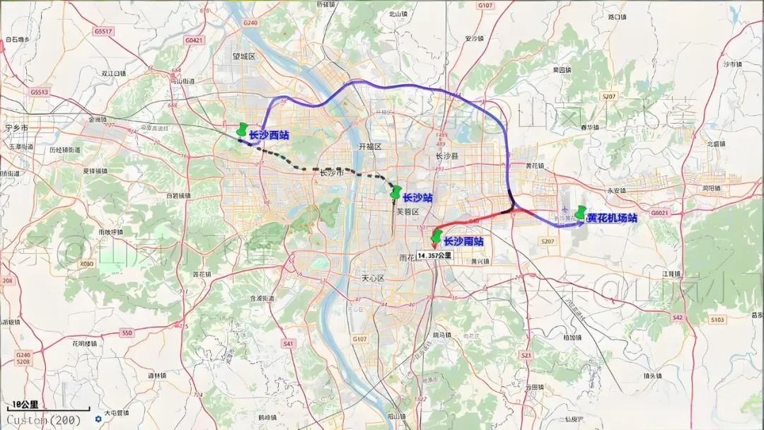 目前,从长沙南站前往长沙西站,高铁出行需经株洲西、湘潭北等站点绕行,全程耗时3小时以上,甚至超过长沙至武汉的高铁时长;选择地面交通同样不便,即便走最快的快速通道,在无拥堵情况下也需1.5小时左右,且受路况影响极大。这种低效衔接,不仅给市民跨区出行带来困扰,更制约了两大枢纽的协同效能——长沙南站运能已接近饱和,却无法通过长沙西站分流部分客流;长沙西站未来投运后,也难以快速承接长沙南站的中转需求,形成资源浪费。
