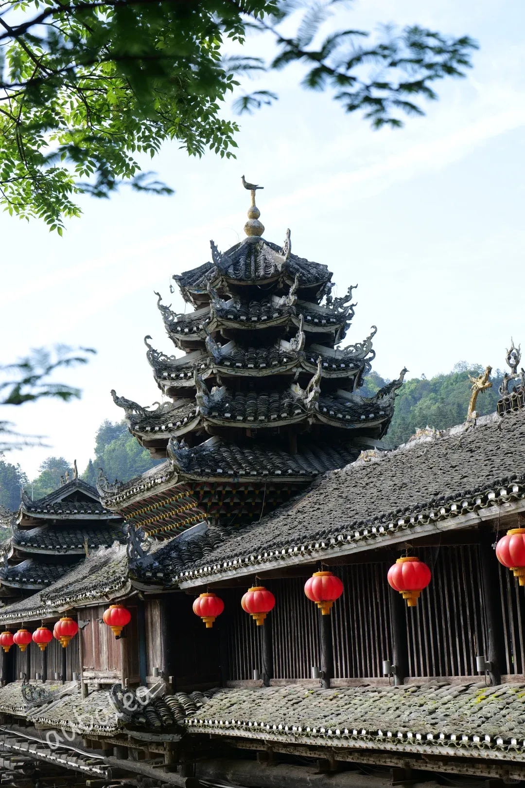 芋头古侗寨有鼓楼,有风雨桥,有吊脚楼。