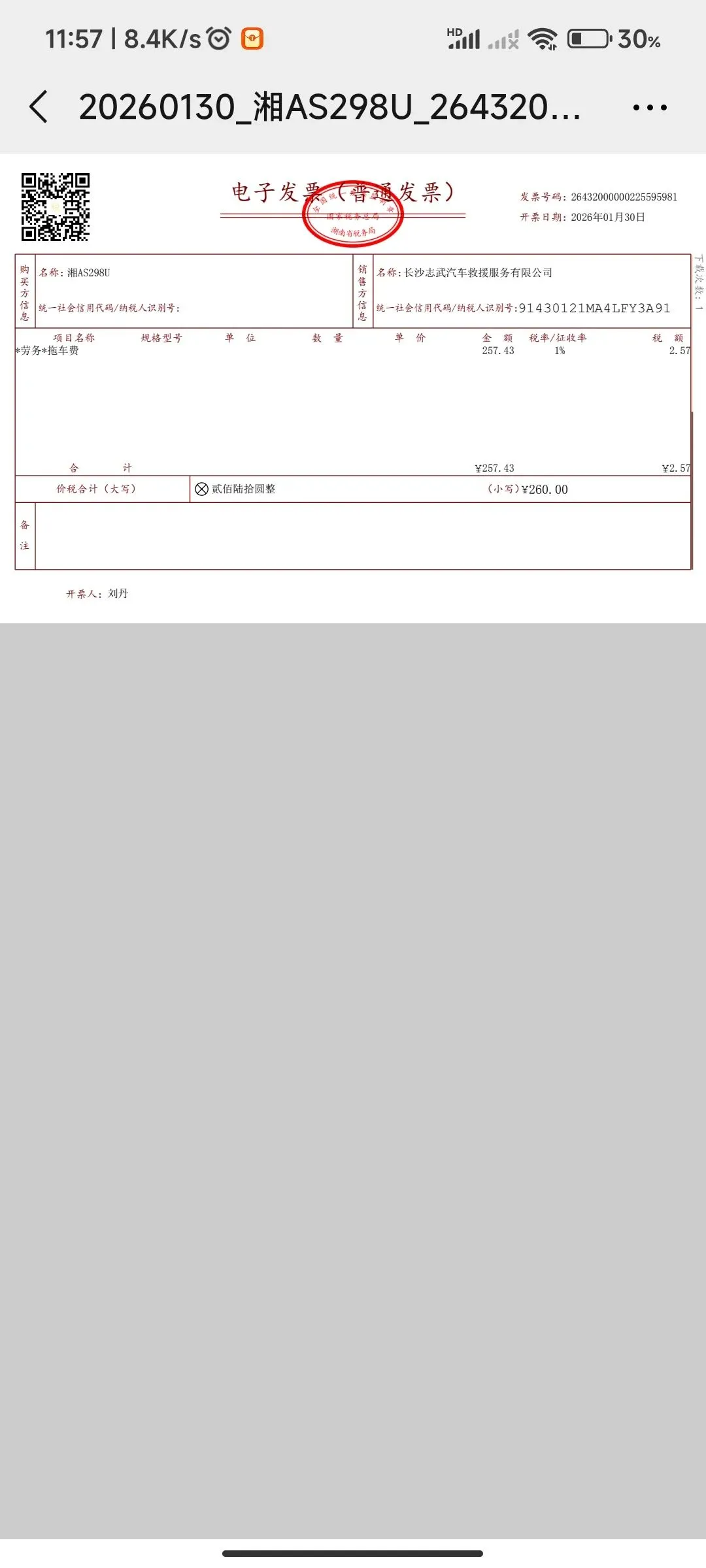 本人与2026年1月25日18时25分,驾驶湘AS298U汽车在龙华岭村莲塘水库路口发生交通事故后,由安沙交警支队龙群波交警处理,并叫拖车,且事先没有告知拖车费用问题。第二上午十点左右去配合处理相关事宜,并且询问曹信指导员,拖车费停车费都是免费的,后昨天下午16点30左右去到长沙志武汽车救援有限公司取车后,被强制收取260元拖车费用,且要求开发票,公司说税务系统问题没有开具发票证明。