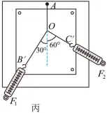 方向拉,仍将小圆环圆心拉到O点,如图丙所示,现保持