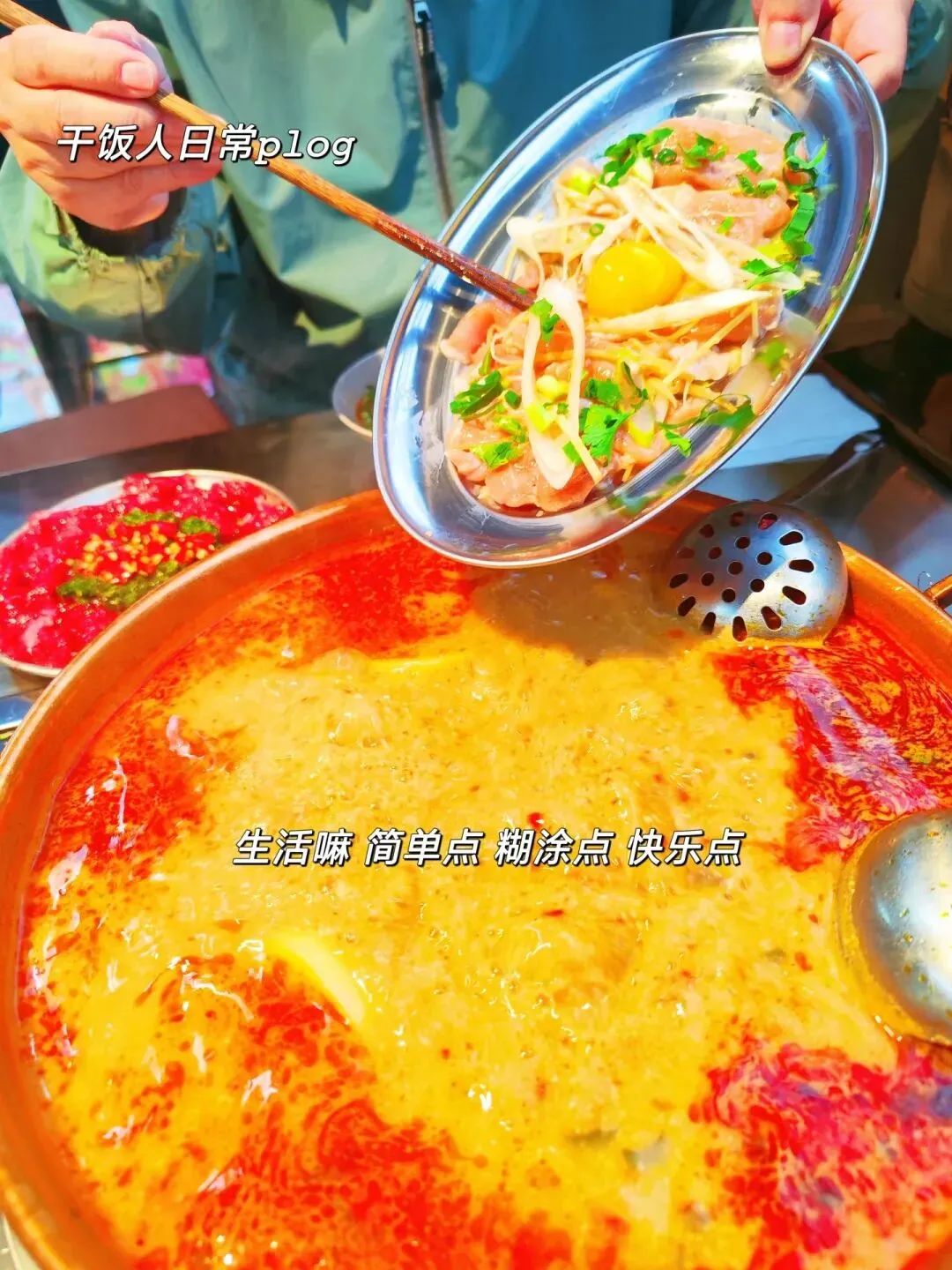 - 葱姜剔骨鸡腿肉:现杀的鸡腿肉提前腌制入味,涮完嫩到脱骨,完全锁住了肉汁,连带着汤底的鲜气一起在嘴里散开。