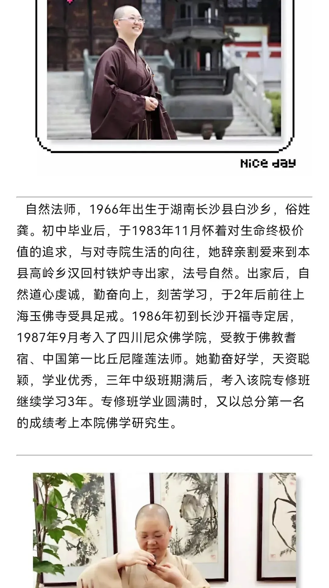 该寺住持二十三载的自然法师,