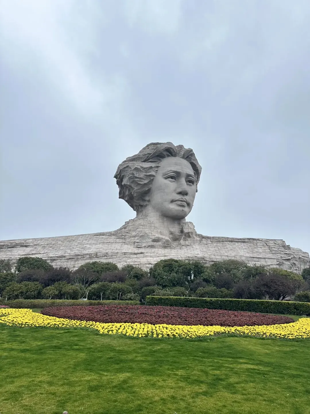 晨起的长沙,带着湘江的温润清风,第一站便奔赴橘子洲。早就听闻洲头绵长,果断坐上观光小火车,彩色车厢穿梭在绿荫间,窗外湘江碧波粼粼,江风拂面,一路皆是惬意。小火车直达终点,毛泽东青年艺术雕塑赫然矗立,青年伟人的轮廓迎着晨光格外挺拔,目光望向湘江与城市天际线,满是风华正茂的意气,站在雕像前,心底满是崇敬。