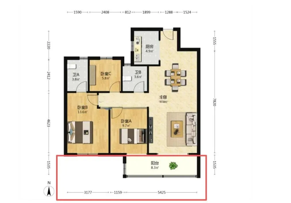 小区内同户型毛坯90万起,简装98万起。那这套129平精装四房,仅60.6万,相当于6.1折!