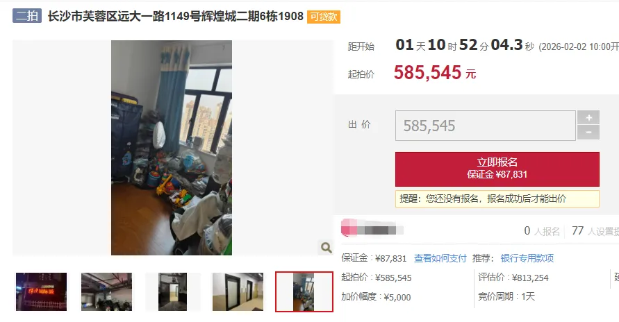 小区同户型二手房价均价1万,三房8-9千。同户型最便宜的挂牌108万,这套变卖阶段58.8万元仅相当于5.4折。
