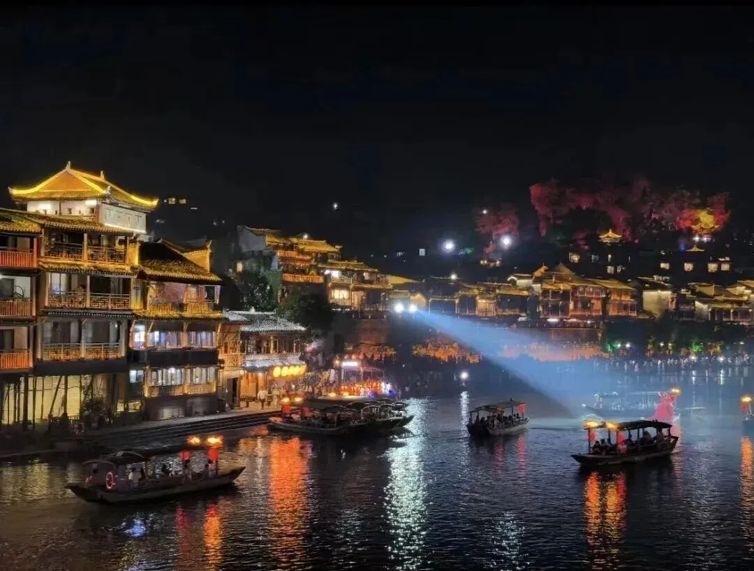 后乘车前往【凤凰古城】沱江倒影下的凤凰古城就会变成一幅连绵不断的绚丽画卷,我们这些游客就像在画中行走。凤凰的夜色已经很美了,可是人们喜欢“锦上添花”,他们在沱江边放“许愿灯”。这种纸糊的灯饰,制作精美,各式各样,漂浮在江面上,闪闪烁烁,仿佛给沱江系上了一条耀眼的腰带。后入住酒店休息。