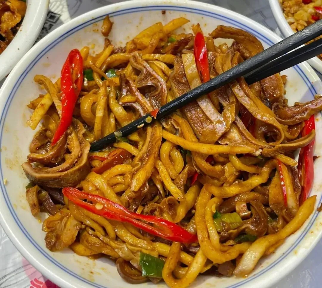 一盏灯的镇店之宝,没吃过等于白来!去骨鸭掌筋Q弹脆嫩,先脆后弹越嚼越香,搭配小红椒+大蒜叶猛火快炒,锅气直接拉满。