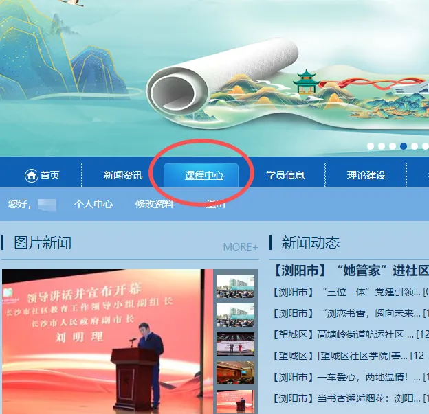 登录后,点击【课程中心】
