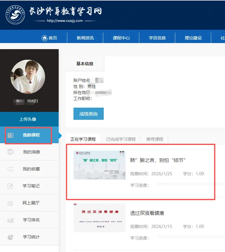 播放1秒或几秒后就可以关了,那么这个课程就添加到【我的课程】中。