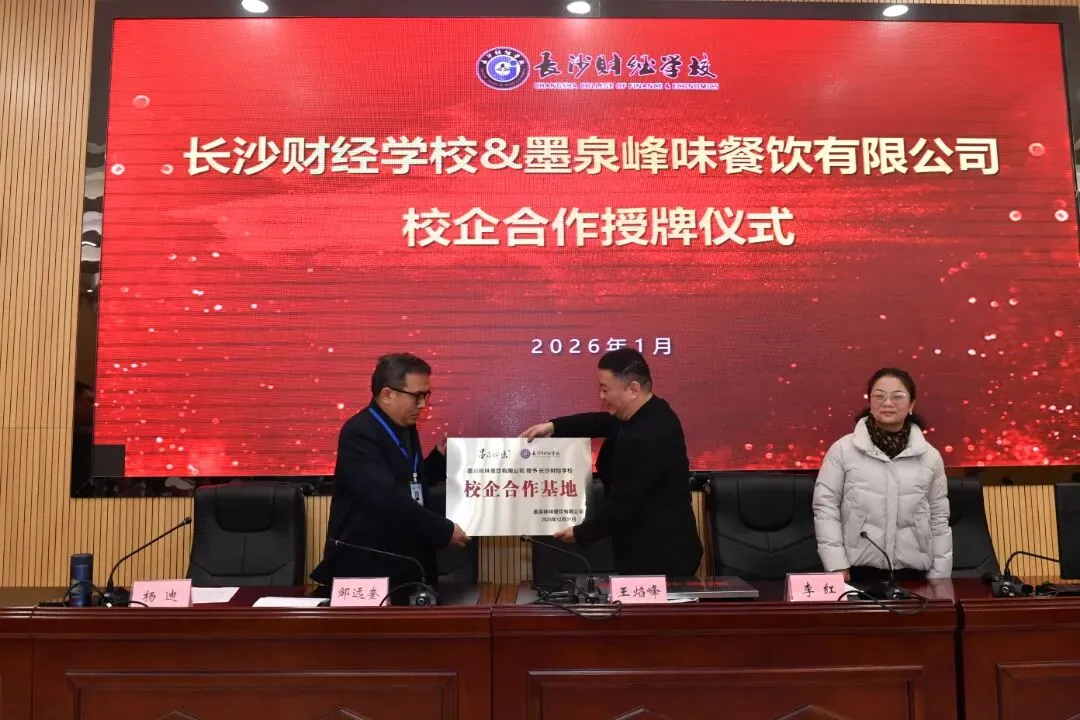 校企携手,共育匠才 ——长沙财经学校与墨泉峰味餐饮有限公司校企合作授牌仪式圆满举行