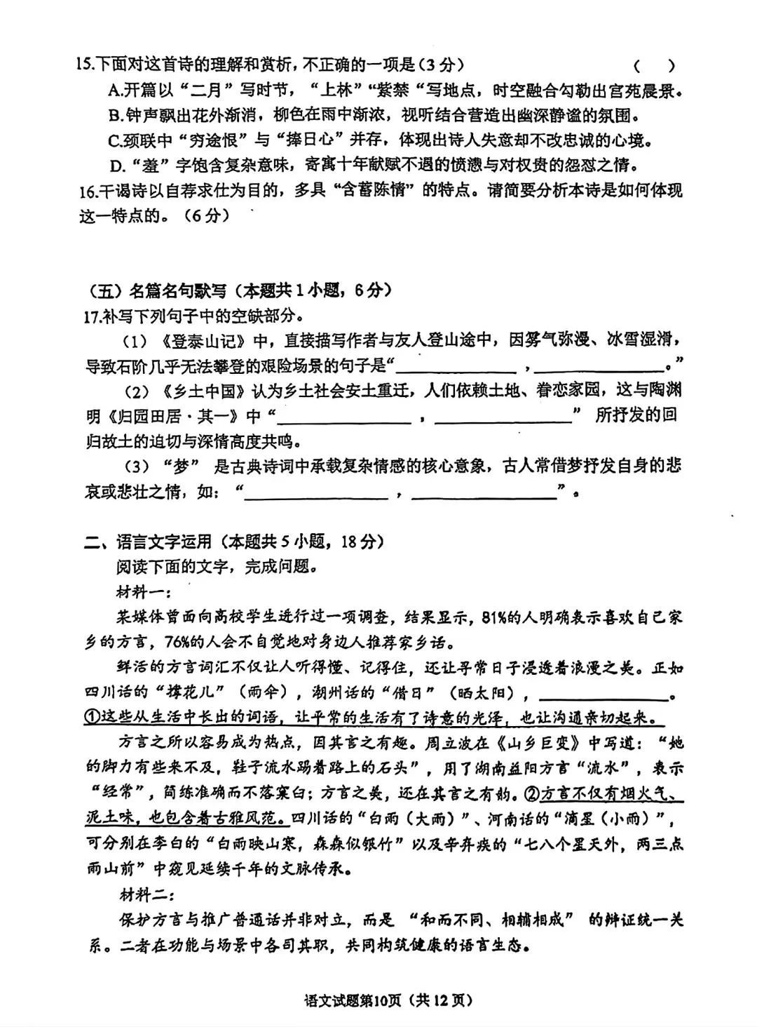 长沙一模语文试卷长沙市2026年高三年级模拟考试语文