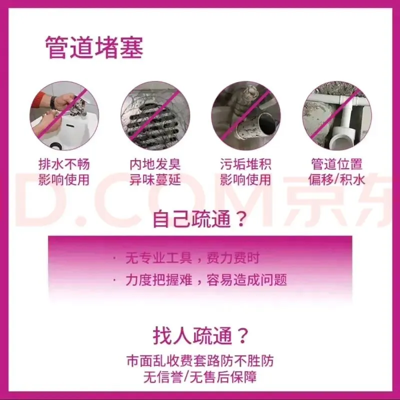 疑难疏通:快速疏通因装修掉入水泥、沙子或头发等造成的下水道堵塞。