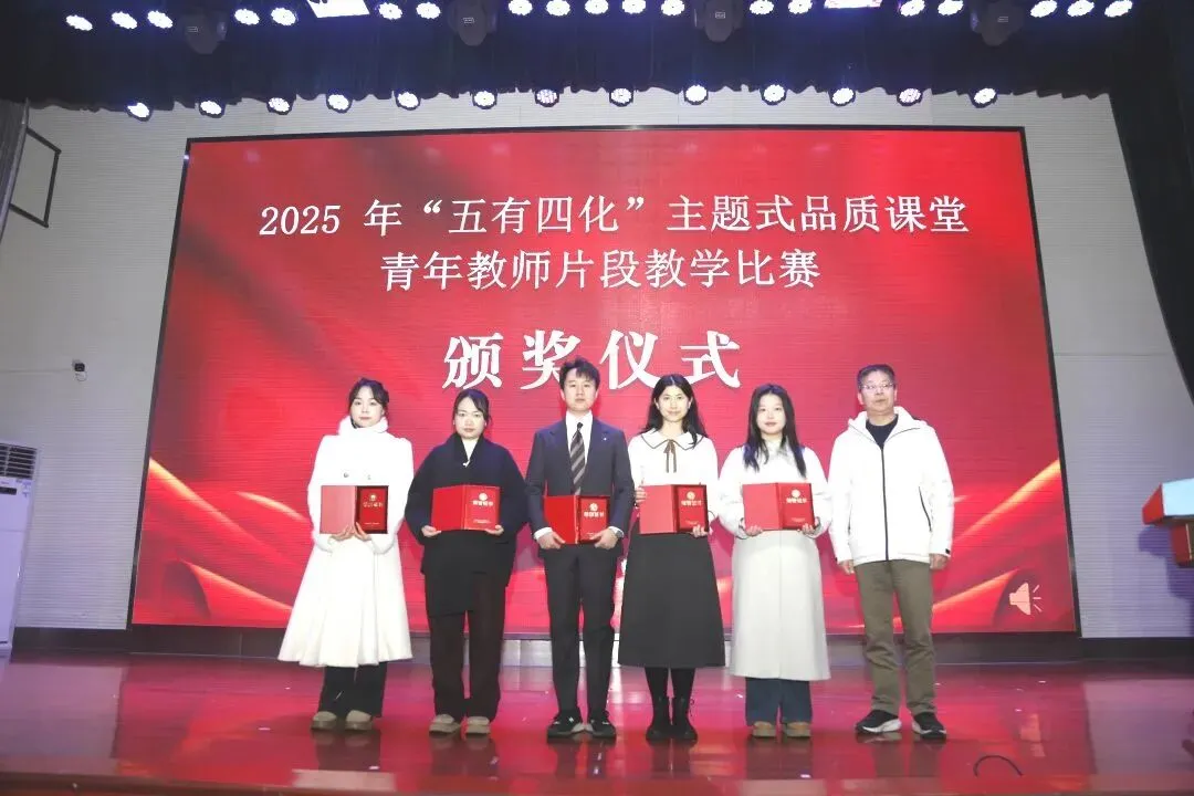 首个环节聚焦教师专业成长,举行2025年“五有四化”主题式品质课堂青年教师片段教学比赛颁奖仪式。