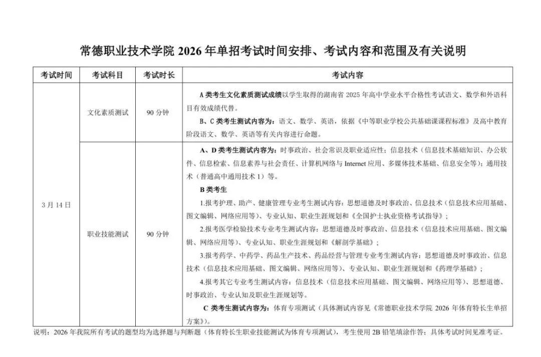 >【2026考试大纲】常德职业技术学院