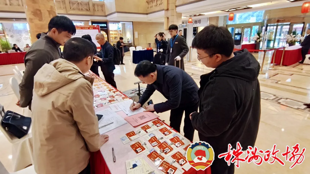 驻地报到处,住株省政协委员在工作人员引导下有序签到,高效地完成报到流程。现场发放了《履职参考》等两会专题文件,为委员履职提供信息服务。完成各项报到程序后,委员们认真翻阅会议材料,熟悉会议议程和相关安排。