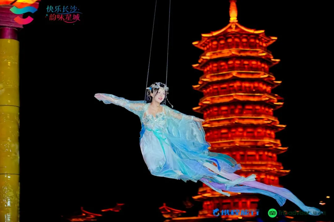 当晚的“夜游铜官窑”将体验推向高潮。绚烂的非遗技艺“打铁花”如星河倾泻,篝火晚会热火朝天,“天外飞仙”美拍体验让达人们尝试了飞天威亚。穿越千年的梦幻场景令达人们大呼过瘾。来自韩国的达人Dahye表示,自己一直非常喜欢中国古装剧,此次能在长沙打卡现实版的“天外飞仙”,圆了自己一个仙侠梦。