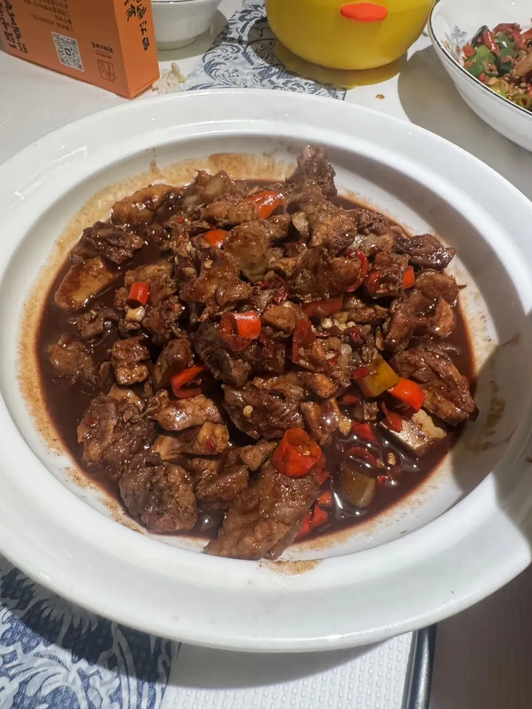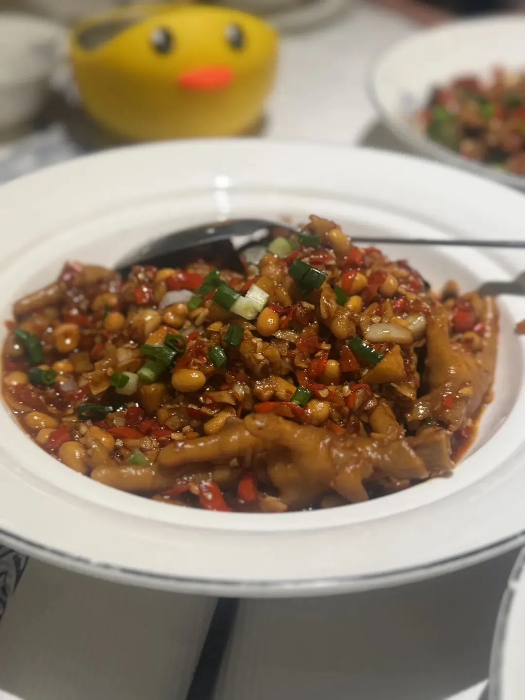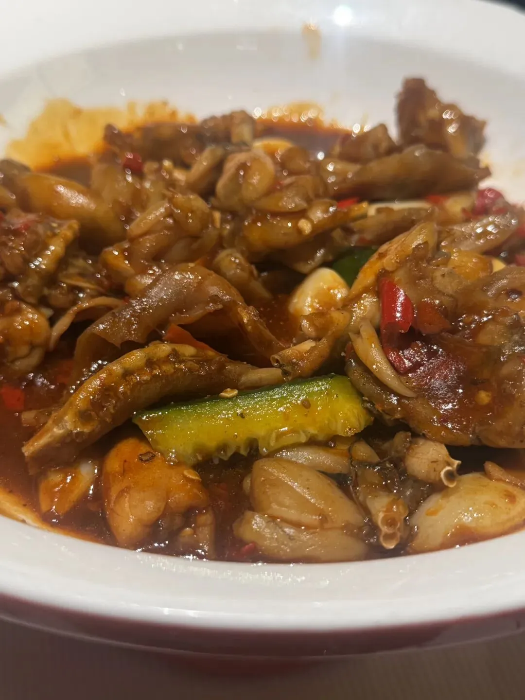 油麦菜,黄豆凤爪,牛蛙一般般,但也算口味调配的可以,下饭神器,但是蛮辣的,名不虚传啊。