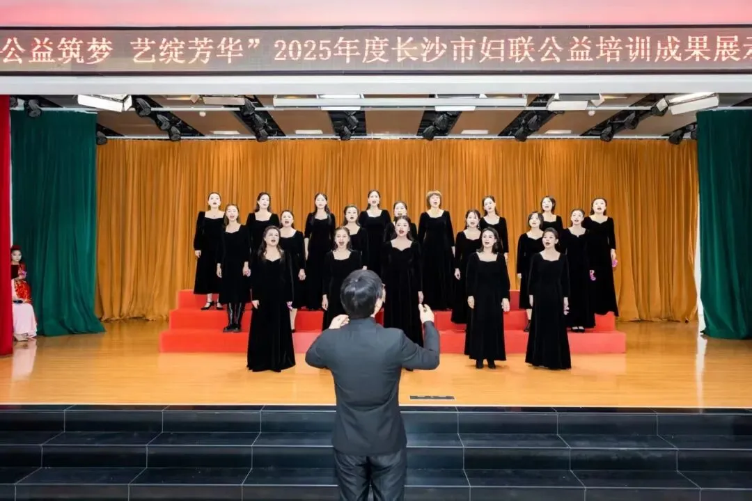 节目展演环节精彩纷呈,公益舞蹈班的《亲爱的你啊》舞姿灵动,展现对生活的热爱;女领联模特队的《衣境漫舞》步伐自信,尽显新时代女性优雅风采;教师团队带来的书画展示《巾帼墨染诵雅章》,将传统笔墨与艺术表演巧妙融合,韵味悠长;小天使艺术团的孩子们表演的《花儿为什么这样红》,天真烂漫,充满生机;女领联舞蹈队的《女人花》柔美而坚韧;最后,辣椒合唱团以一曲激昂深情的《花开中国》将现场气氛推向高潮,也为展演画上圆满句号。此次成果展示,既是公益培训成效的集中呈现,也是市妇联赋能妇女儿童成长的生动实践。