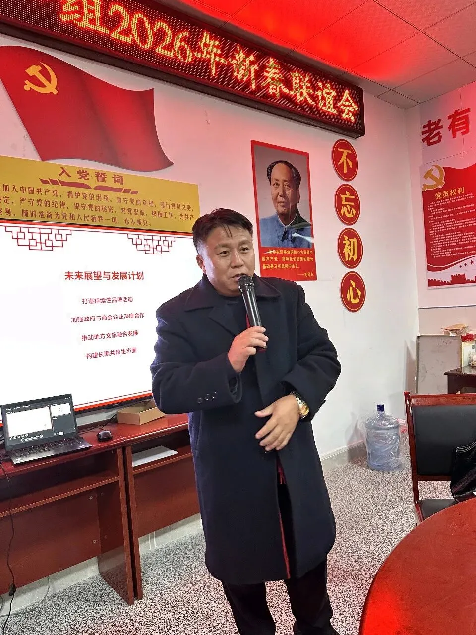 在交流环节中,每位参会成员逐一发言,介绍自身企业情况、分享2026年发展规划,并表达对家乡、对商会、对一组未来的美好祝愿。通过真诚的交流,大家进一步加深了解,凝聚了共识,也为后续合作奠定了坚实基础。