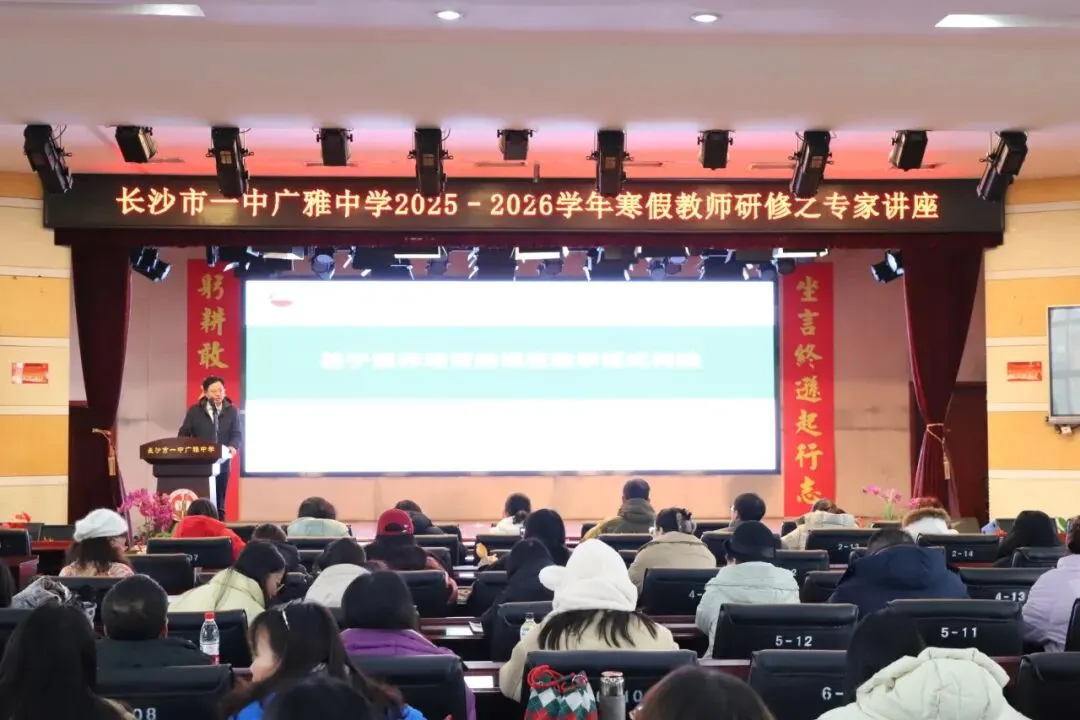 2026年1月31日下午,长沙市一中广雅中学全体教师齐聚一堂,在学校的精心组织下,开启了第一轮寒假教师培训的序幕。本次培训特邀在教育领域具有深厚学术背景与广泛影响力的专家——中国教育学会历史教学专业委员会理事、人教社统编历史教材培训专家、《中学历史教学参考》特约研究员王柱根老师,为全体教师作题为“基于素养培育的课堂教学范式构建思考”的专题讲座。王老师的到来,为我校教师带来了一场兼具理论高度与实践深度的专业引领。