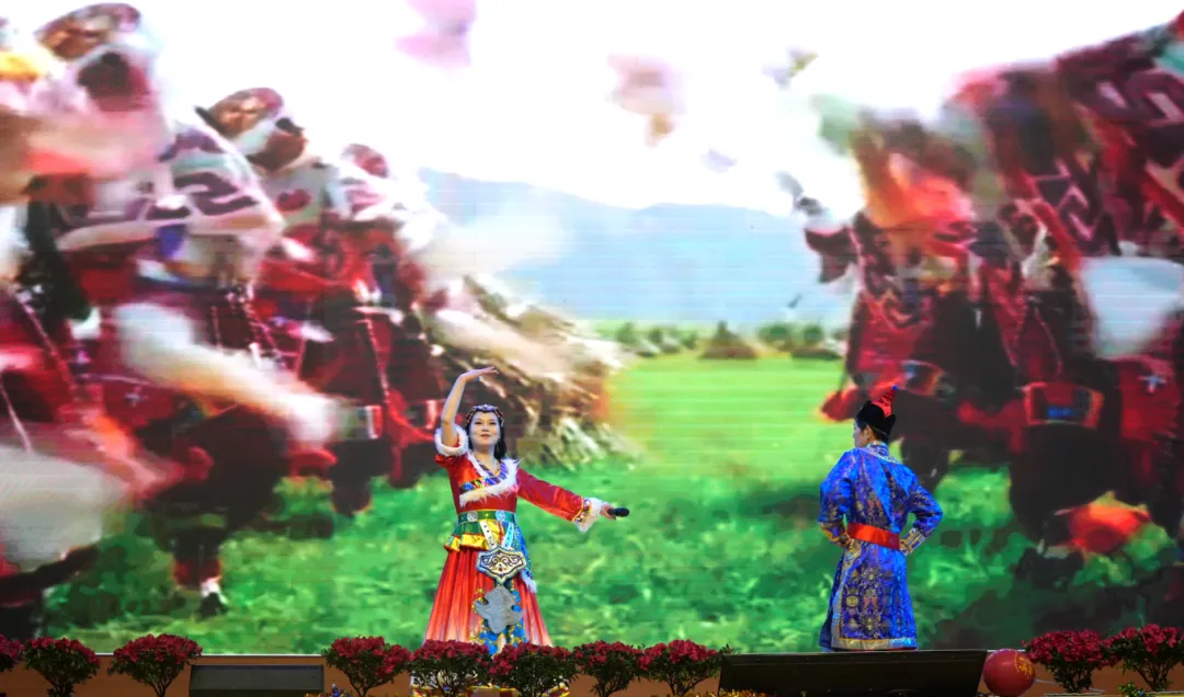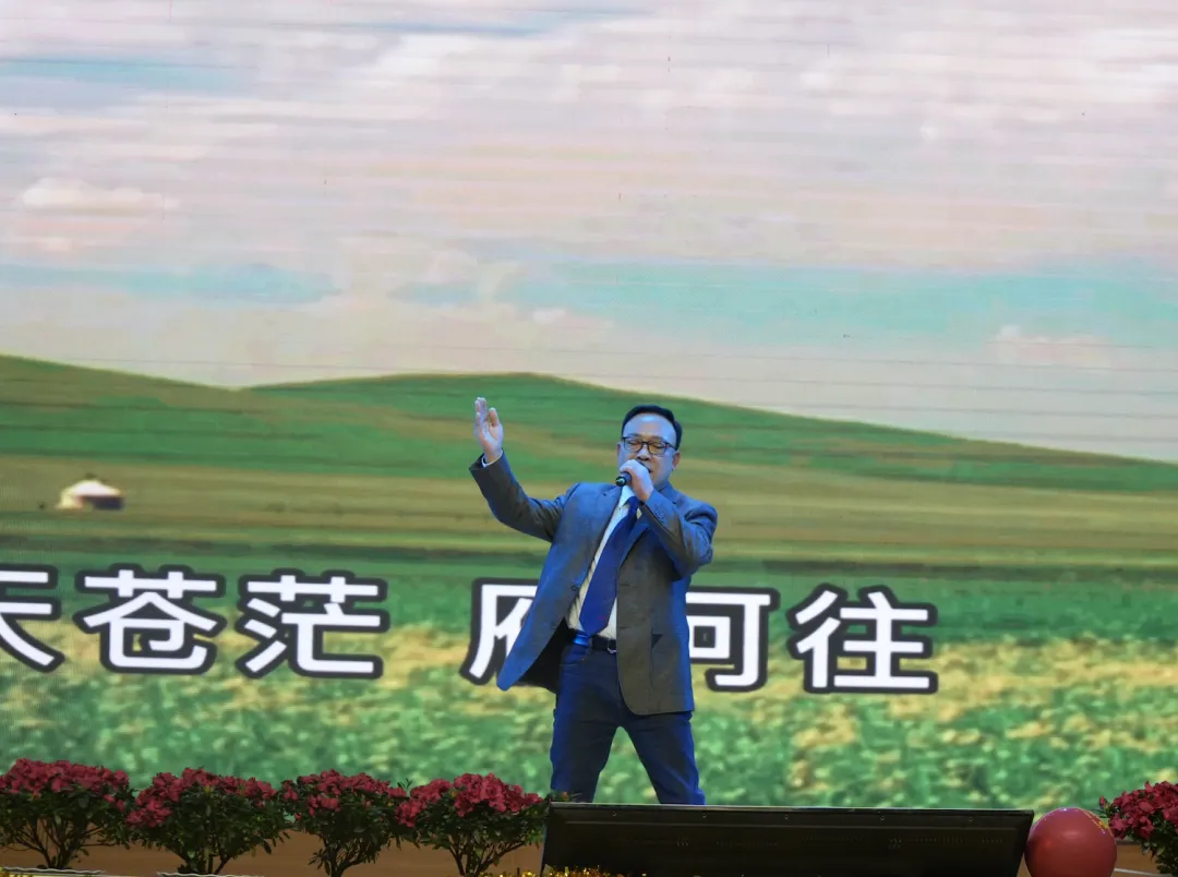 杨勇(英)老师独唱《鸿雁》,歌声辽阔深远,仿佛将观众带入苍茫草原,情感真挚动人。
