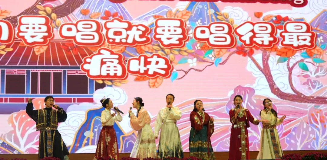 第三篇章在谭志老师激昂澎湃的《国泰民安》歌声中展开,唱出了全体教职工对祖国昌盛、山河无恙的美好祝愿。