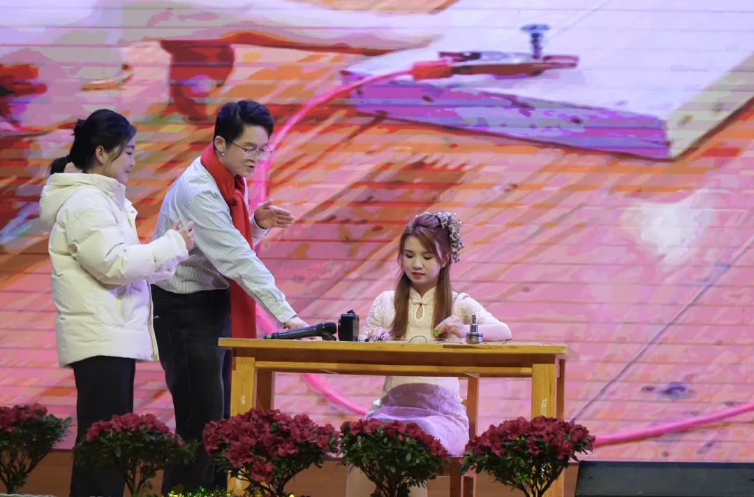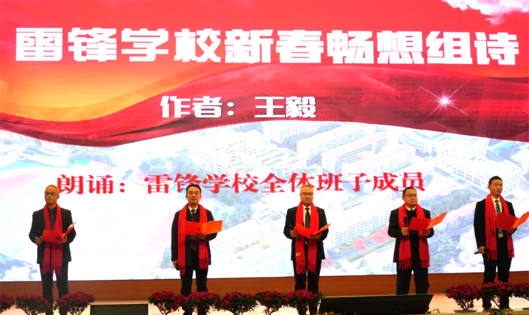 压轴登场的是由校领导团队带来的原创诗歌朗诵《新春畅想》,他们以诗抒怀、以诵明志,深情展望学校发展蓝图,将整场晚会推向情感的高潮。