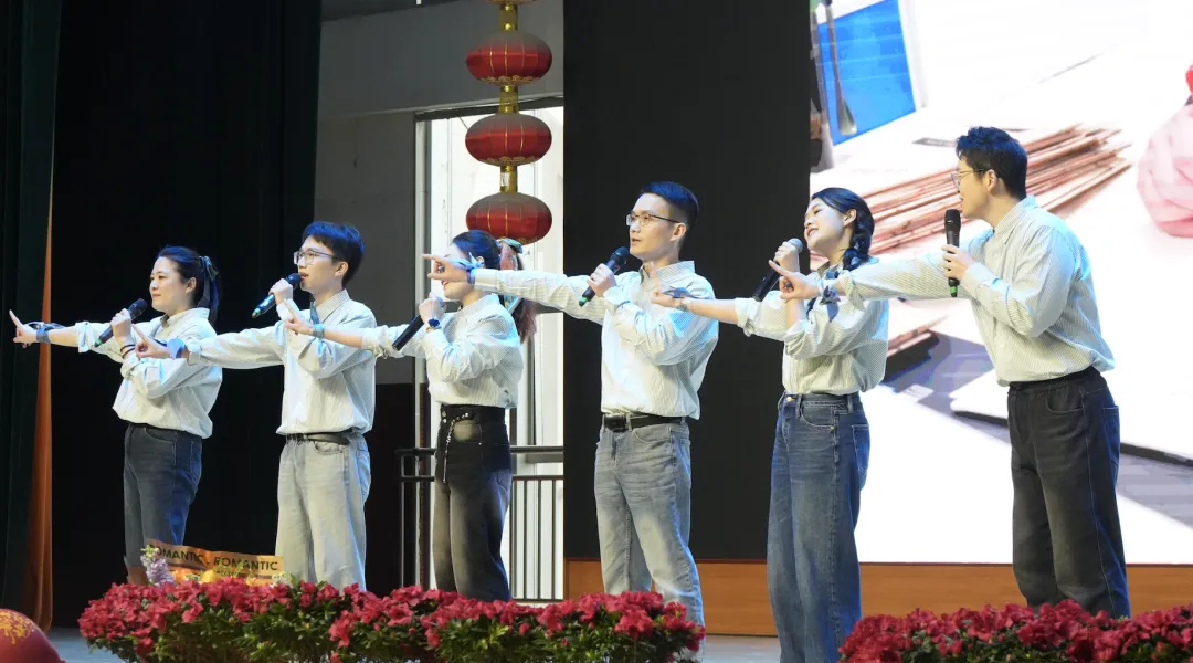 英语教研组的表演别出心裁,以歌舞《最炫民族风》惊艳登场,明快的节奏与绚丽的服饰交织出欢腾的节日气息,展现出教师们活泼热情的另一面。