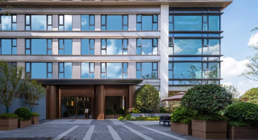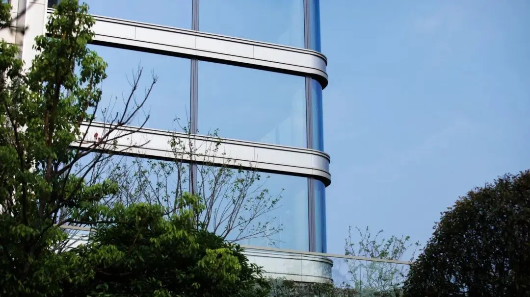 采用大面宽玻璃幕墙搭配金属铝板线条,超高窗墙比设计,不吝用料和成本,隔绝喧嚣。