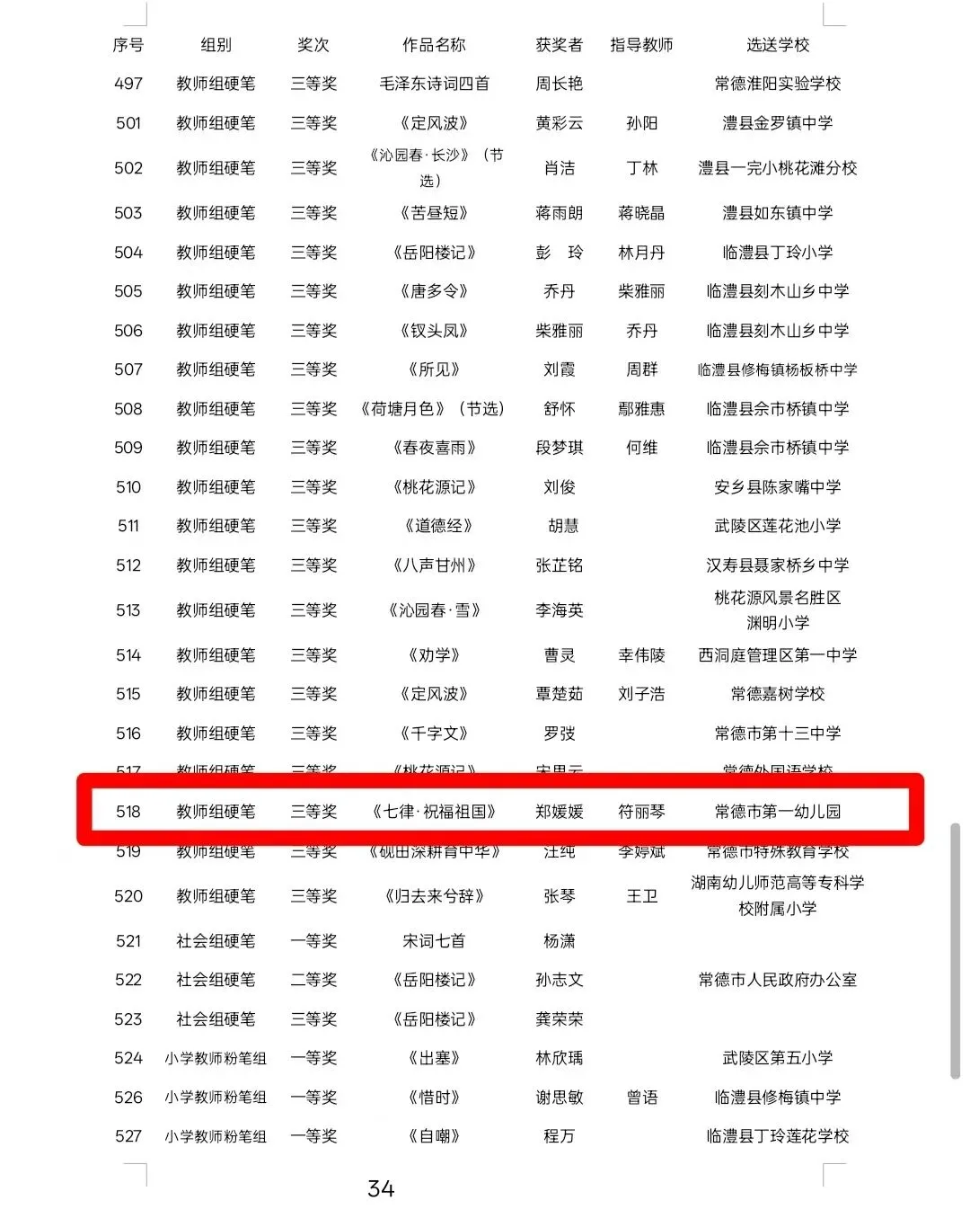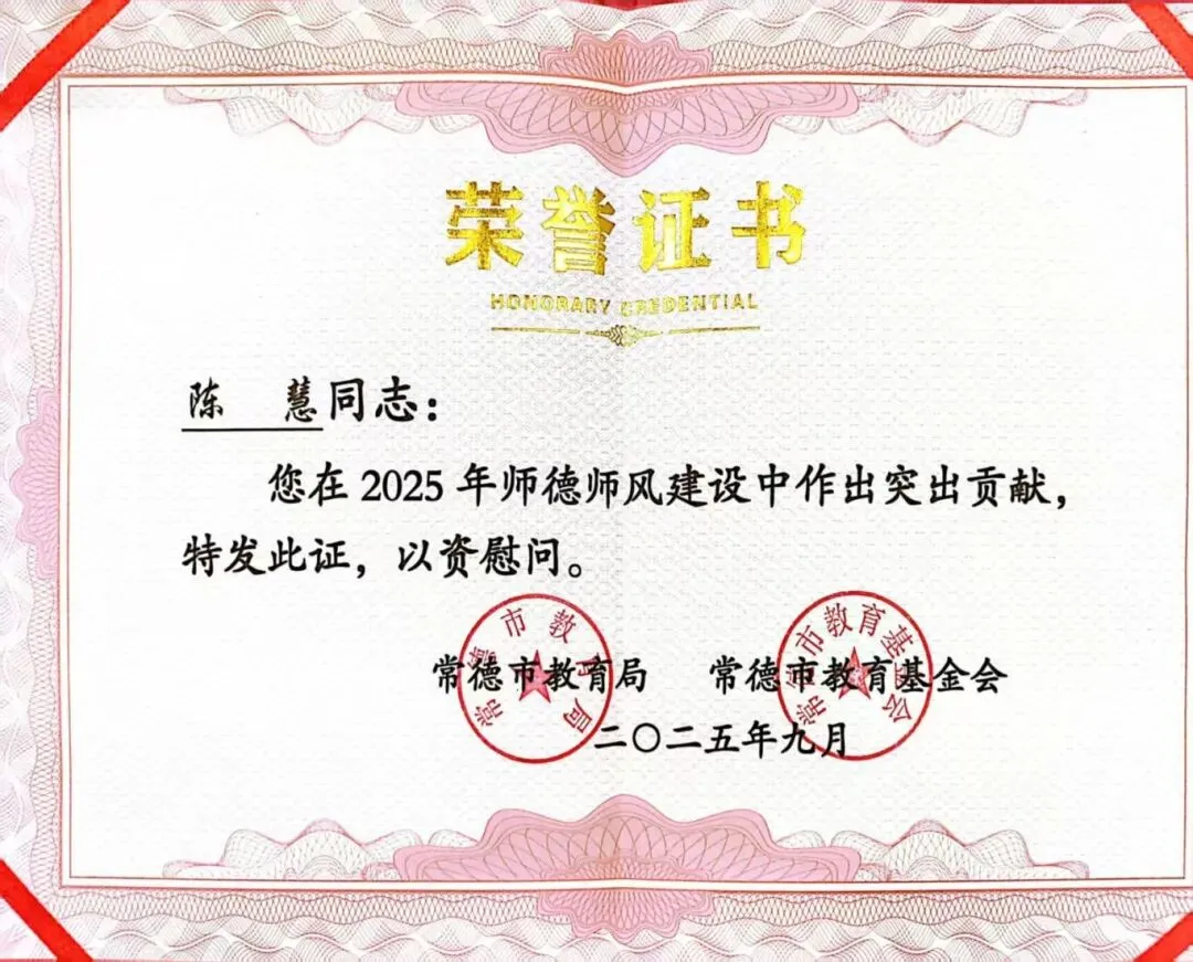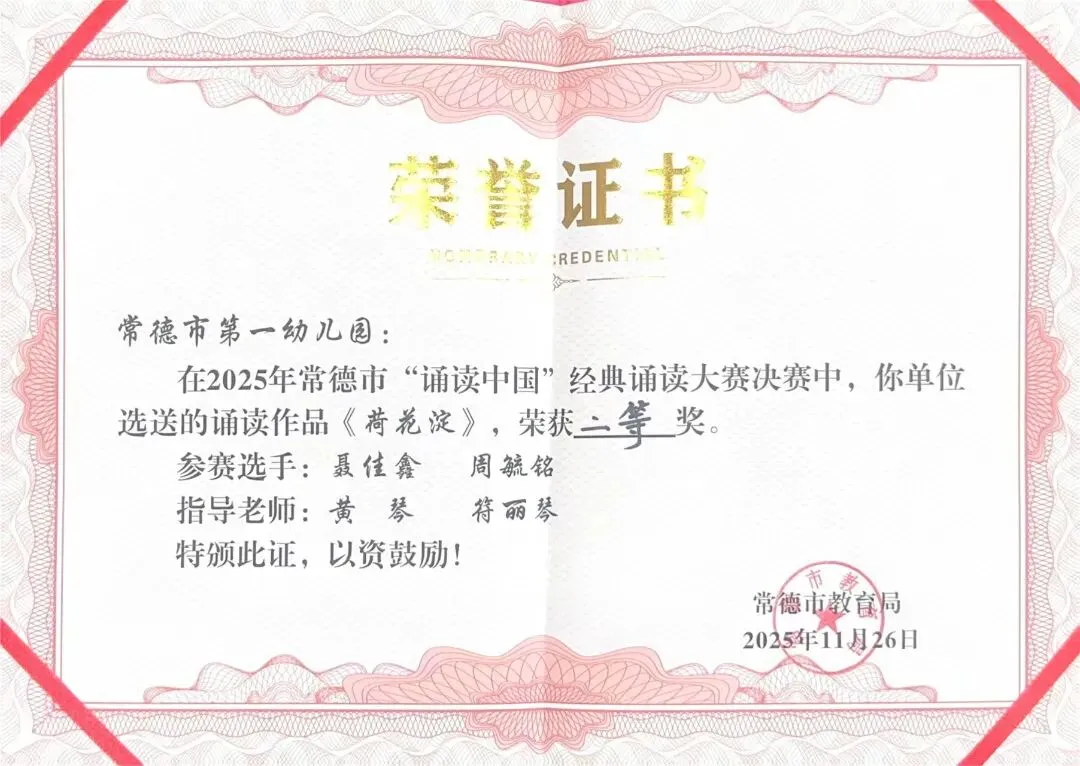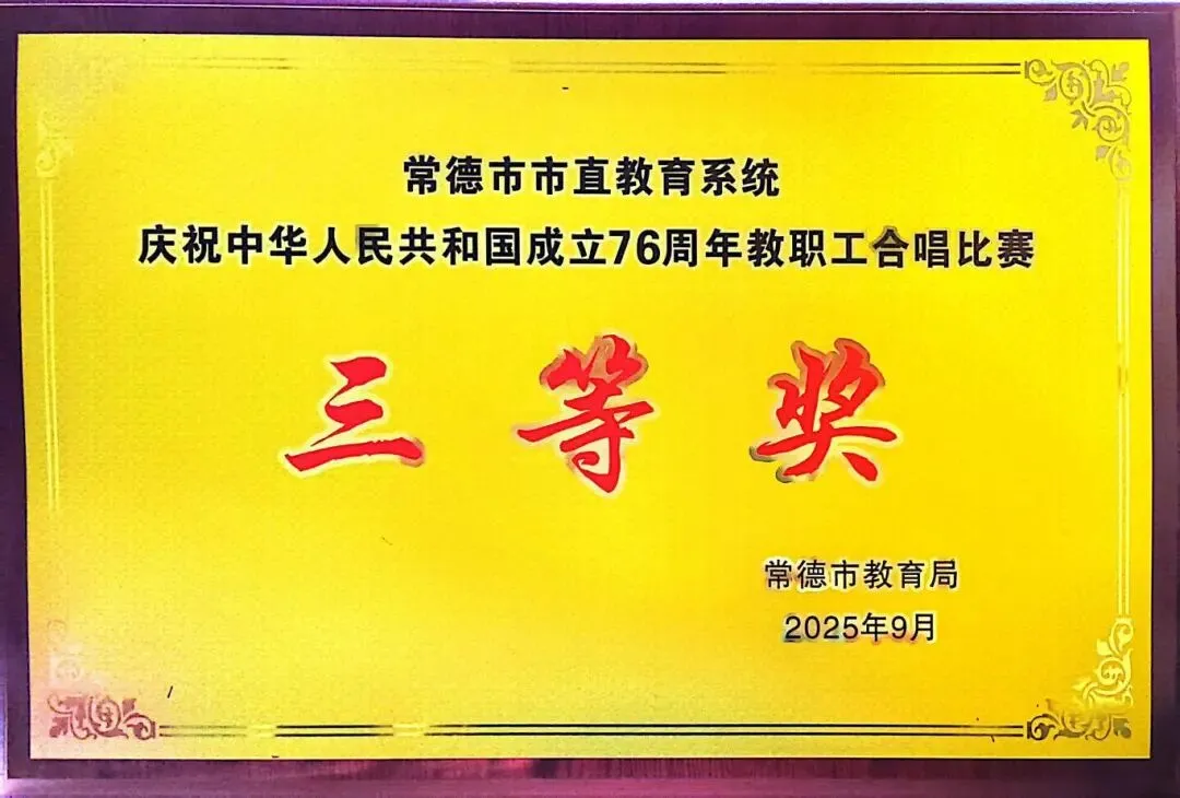 在2025年常德市“诵读中国”经典诵读大赛中,聂佳鑫、周毓铭的作品《荷花淀》荣获一等奖;在“典耀中华 赓续文脉”经典诵读大赛决赛中,聂佳鑫、周毓铭的作品《荷花淀》荣获二等奖;在常德市中华经典诵写讲大赛“笔墨中国”汉字书写大赛中,郑媛媛荣获教师组硬笔“三等奖”。