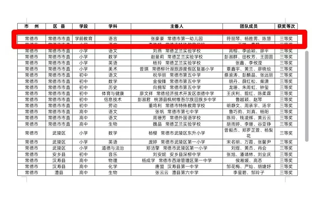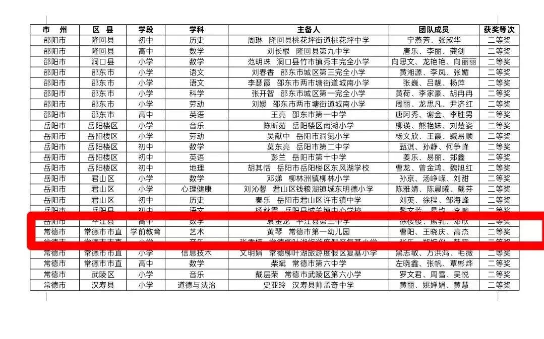 研思并进,厚积薄发。在湖南省教师在线集体备课大赛中,黄琴、曹阳、王晓庆、高杰荣获二等奖;张豪豪、符丽琴、杨胜男、陈慧荣获三等奖。