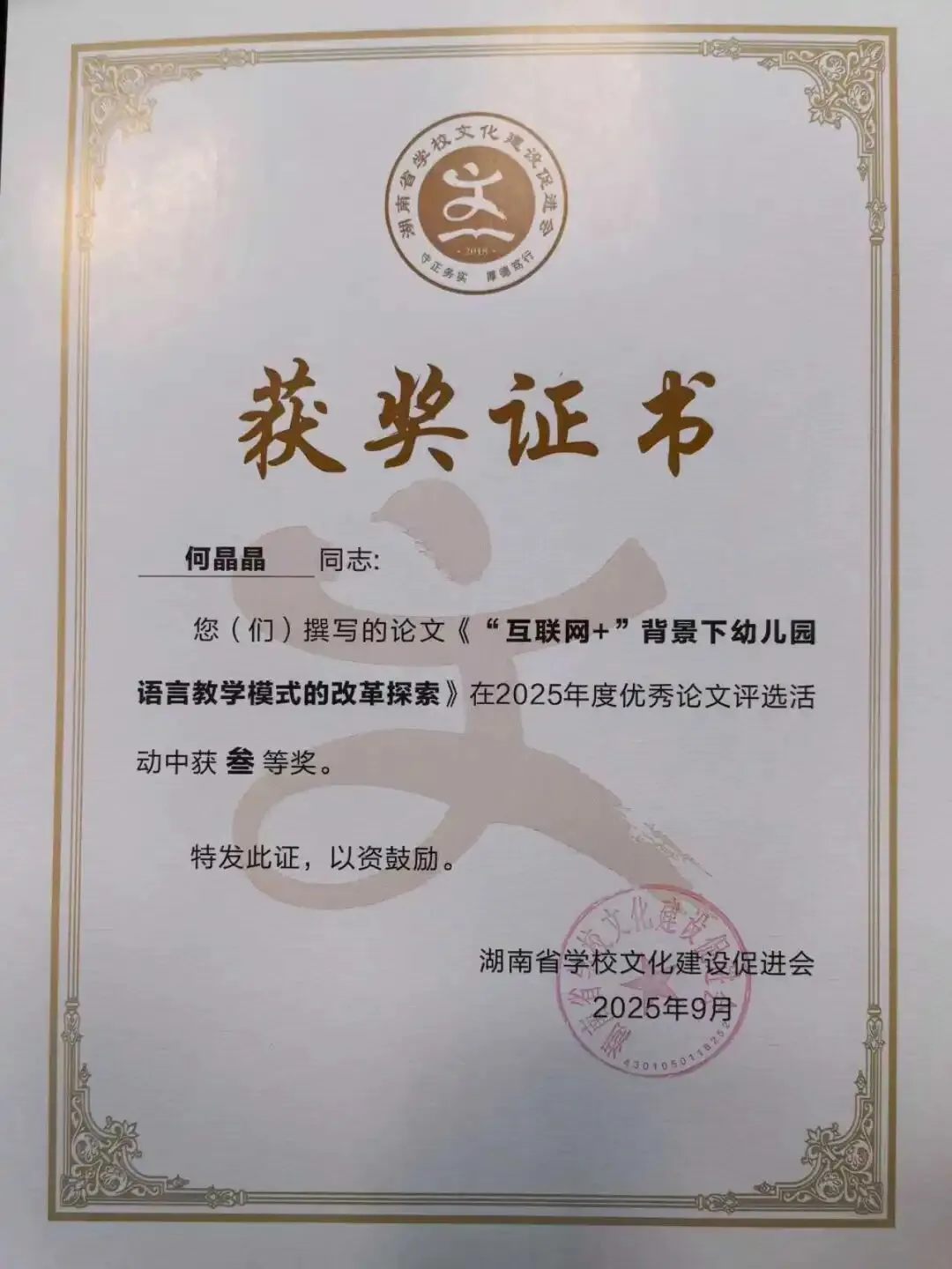 在2025年度优秀论文评选活动中,王紫怡荣获一等奖,胡姣、贾晗、聂宇、张茜茜荣获二等奖,曹源、高杰、陈赐英、陈慧、陈起明、何晶晶、彭坤琪、苏慧敏、汪艳荣获三等奖。
