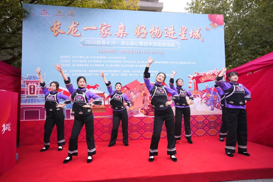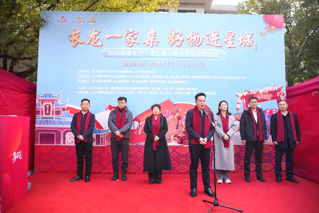 开幕式在欢快的民族舞蹈表演中拉开帷幕。湖南省供销集团董事长聂志军首先致辞,表达了支持龙山产业发展、畅通农产品销售渠道的坚定决心。中共龙山县委副书记、县人民政府县长周胜益代表龙山县委、县政府及全县人民,向长沙市委、市政府及社会各界长期以来的倾力帮扶表示衷心感谢,并热情推介了龙山百合、里耶脐橙、腊制品、茶油等七大特色产业的优质年货。随后,长沙市委副秘书长、市委办公室分管日常工作副主任黎明宣布活动正式开幕。
