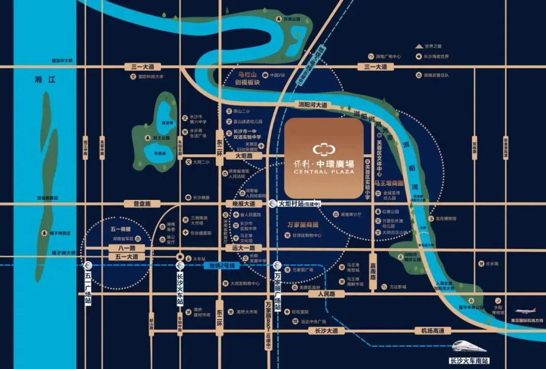 保利中环广场位于长沙芙蓉主城,紧跟城市发展脚步,高楼大厦云集此地,是长沙的心脏和大脑所在。区域内省委、省军区等党政机关汇集,商政核心皆凝于此。