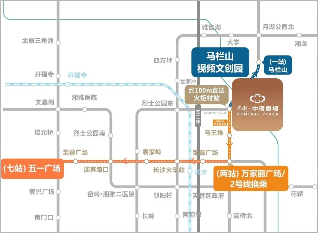规划中的地铁线和BRT线小编就先不说了,光说目前,保利中环广场与已开通的地铁5号线火炬村站相邻咫尺。
