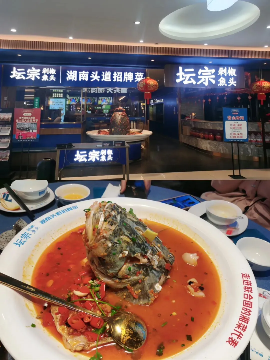 8.坛宗剁椒鱼头:招牌菜坛宗剁椒鱼头选用6斤以上水库大雄鱼搭配五年窖藏剁椒烹制,并配有抬轿上桌和点火仪式,增强用餐体验;其他推荐菜品包括海鲜酿豆腐、金沙茄子、手工面等。