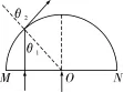 【解析】(1)红光的折射率小于绿光的折射率,所以半圆形曲面恰好只有单色光射出时红光发生折射,绿光恰好发生全反射,如图所示,