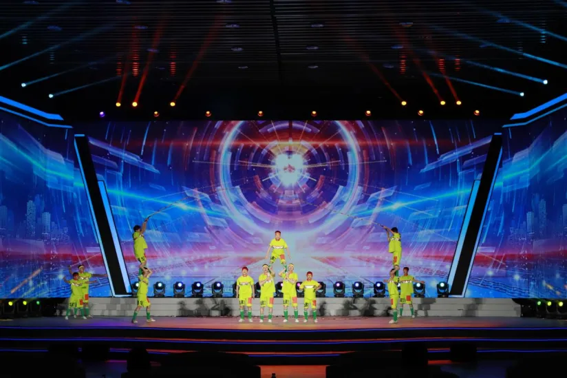 欣欣向荣的金秋时节,少女们于田埂间起舞,以柔美的身姿绘出一幅幅独具特色的稻田画,尽显丰收喜悦,展现出“天蓝、水清、景美、人和”时下中国村落面貌的真实写照。(该节目2024年荣获文旅部主办的第十二届全国杂技展演“优秀节目奖”)