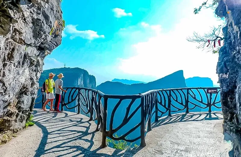 鬼古栈道:脚下是没有边际的绿野,成群的小鸟在峡谷中嬉戏,偶尔有老鹰从眼前掠过,闭上眼,挺着发麻的双腿,带着急促的心跳,伸开双臂,你就能得到一次最完美、最刺激、最贴近自然的SPA。因为,要知道这种在悬崖上赏风景一般都是非人类所能享受的。玻璃栈道:长60米,宽1.6米,最高处海拔1430米。玻璃栈道的刺激震撼,可与举世闻名的美国大峡谷玻璃走廊“天空之路”媲美,因而有了东方“天空之路”的美誉。