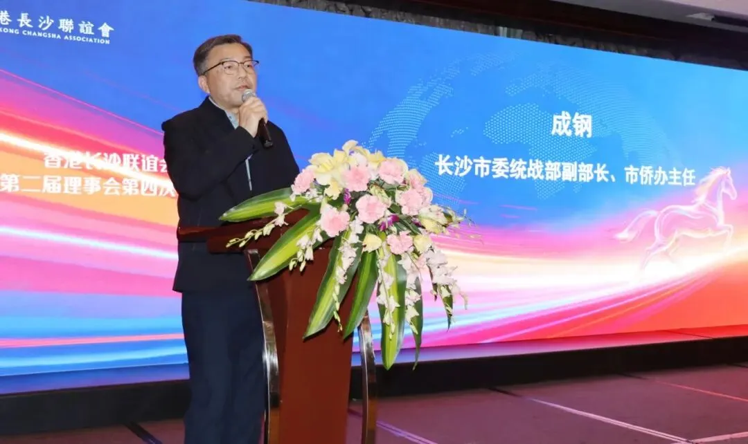 凝心聚力绘蓝图,湘港携手向新程。2026年1月29日,香港长沙联谊会第二届理事会第四次会议隆重召开。中央人民政府驻香港特别行政区联络办公室广东联络部交流处处长、一级调研员范涛,中共长沙市委统战部副部长成钢,市委统战部港澳处(侨务处)处长赵敏、副处长谭林等领导出席部分活动。香港长沙联谊会会长、绿之韵集团董事长胡国安出席会议,与全体理事共商联谊会发展大计,共话湘港合作美好未来。